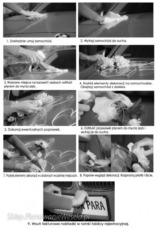 MONTAŻ dekoracji: Do wszystkich elementów zestawu zamocowano wysokiej jakości przyssawki PCV krajowej produkcji. Przyssawki, w przeciwieństwie do dwustronnej taśmy klejącej nie niszczą lakieru oraz gwarantują, że dekoracja nie odpadnie podczas jazdy, zwłaszcza w czasie deszczu. Do każdego zestawu załączamy instrukcję prawidłowego zamocowania dekoracji na samochodzie.