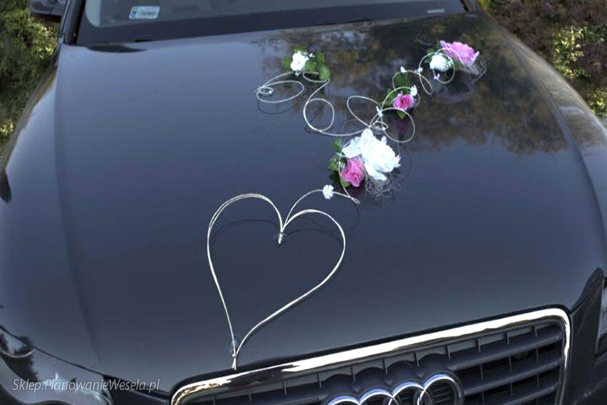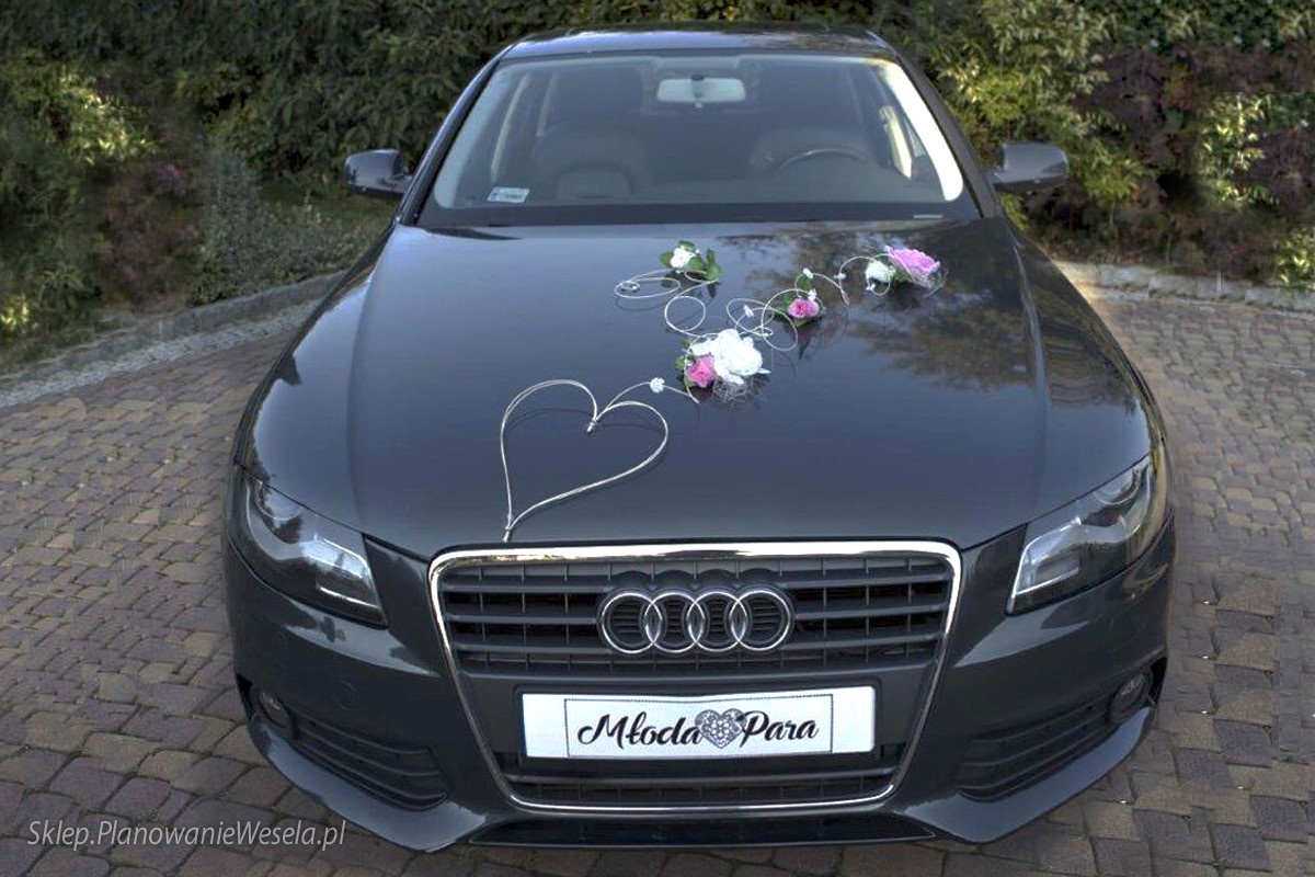 Na zdjęciach przedstawiamy kompletny zestaw LILA. Do przystrojenia samochodu wykorzystaliśmy tylko jeden zestaw. Dekorację można także zamocować na wiele innych sposobów. Komplet LILA jest uniwersalny. Łatwo dopasować go do każdego samochodu. Zestaw składa się z kilku osobnych elementów, które można dowolnie ze sobą komponować. Uwaga! Kokardy nie wchodzą w skład zestawu. Można je dokupić w naszym sklepie.