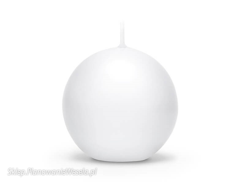 Świeca kula matowa w kolorze białym, średnica 8 centymetrów. Czas palenia około 20 godzin. Cena dotyczy 1 opakowania ( 6 szt.).