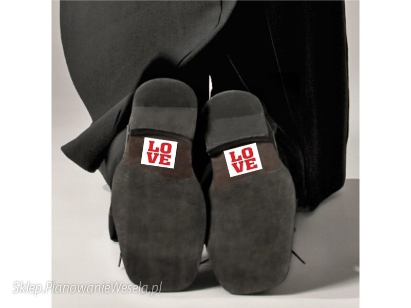 Zabawne naklejki samoprzylepne na podeszwy butów Młodej Pary.
