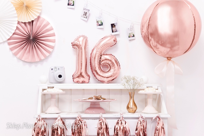 Balon foliowy metalizowany Cyfra ""1"" w kolorze różowego złota, rozmiar ok. 35 cm (14"").