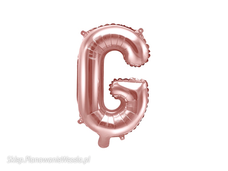 Balon foliowy metalizowany Litera ""G"" w kolorze różowego złota, wysokość ok. 35 cm (14"").