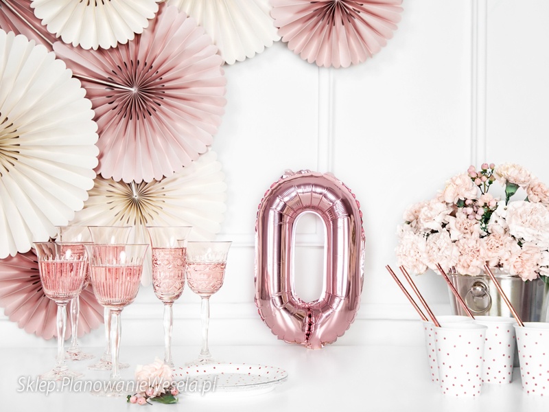 Balon foliowy metalizowany Litera ""O"" w kolorze różowego złota, wysokość ok. 35 cm (14"").