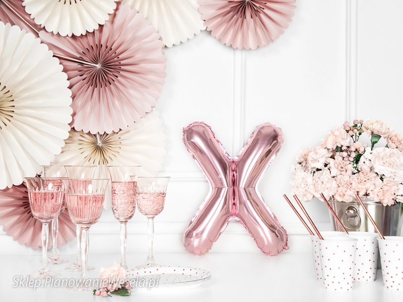 Balon foliowy metalizowany Litera ""X"" w kolorze różowego złota, wysokość ok. 35 cm (14"").