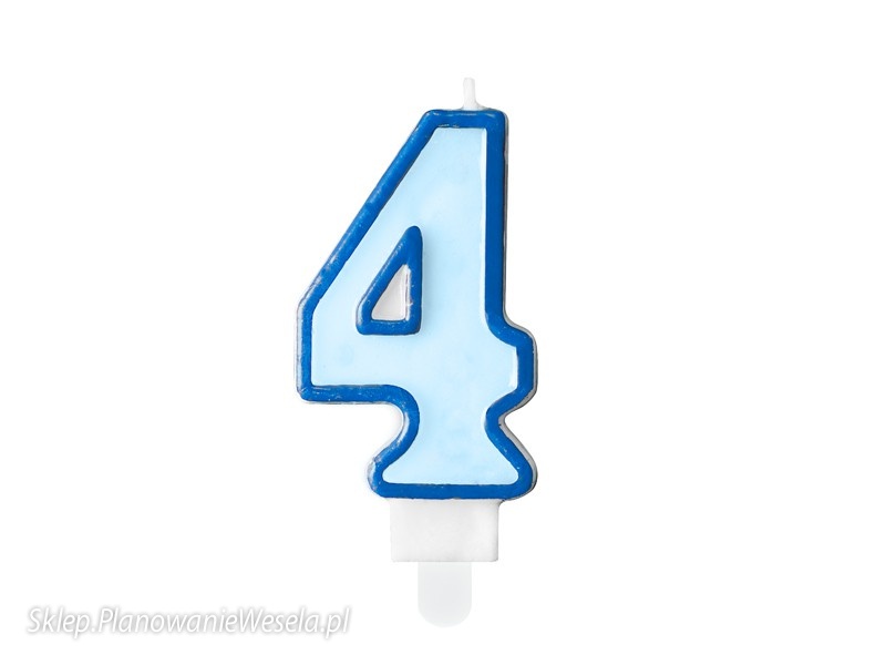 Świeczka urodzinowa Cyferka 4 w kolorze niebieskim, rozmiar 7 centymetrów.