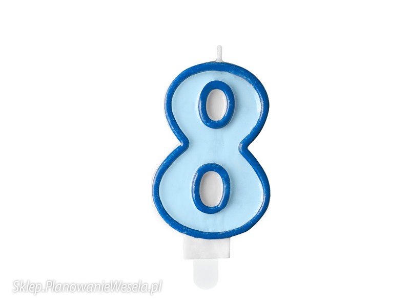 Świeczka urodzinowa Cyferka 8 w kolorze niebieskim, rozmiar 7 centymetrów.