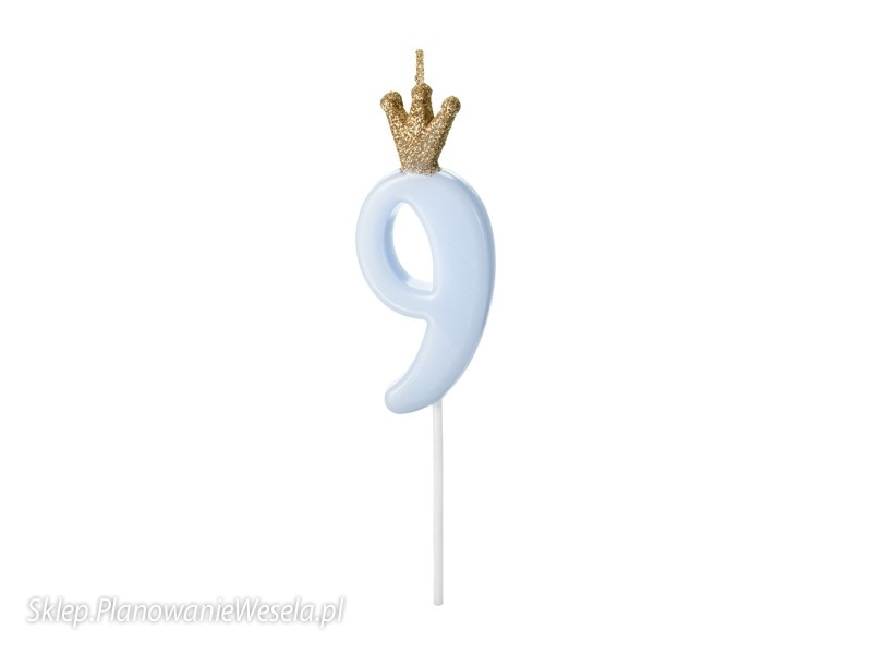 Świeczka urodzinowa Cyferka 9 w kolorze jasnoniebieskim, rozmiar ok. 9.5 cm.
