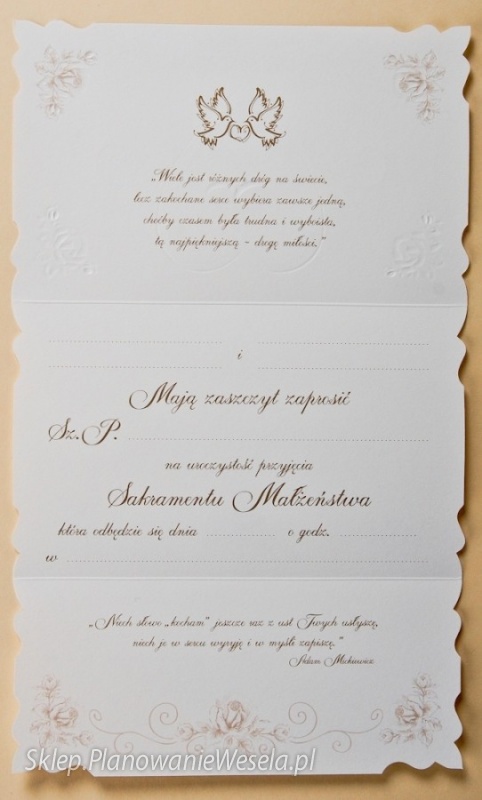 Zaproszenie w komplecie z białą standardową kopertą i karnecikiem (potwierdzeniem przybycia).