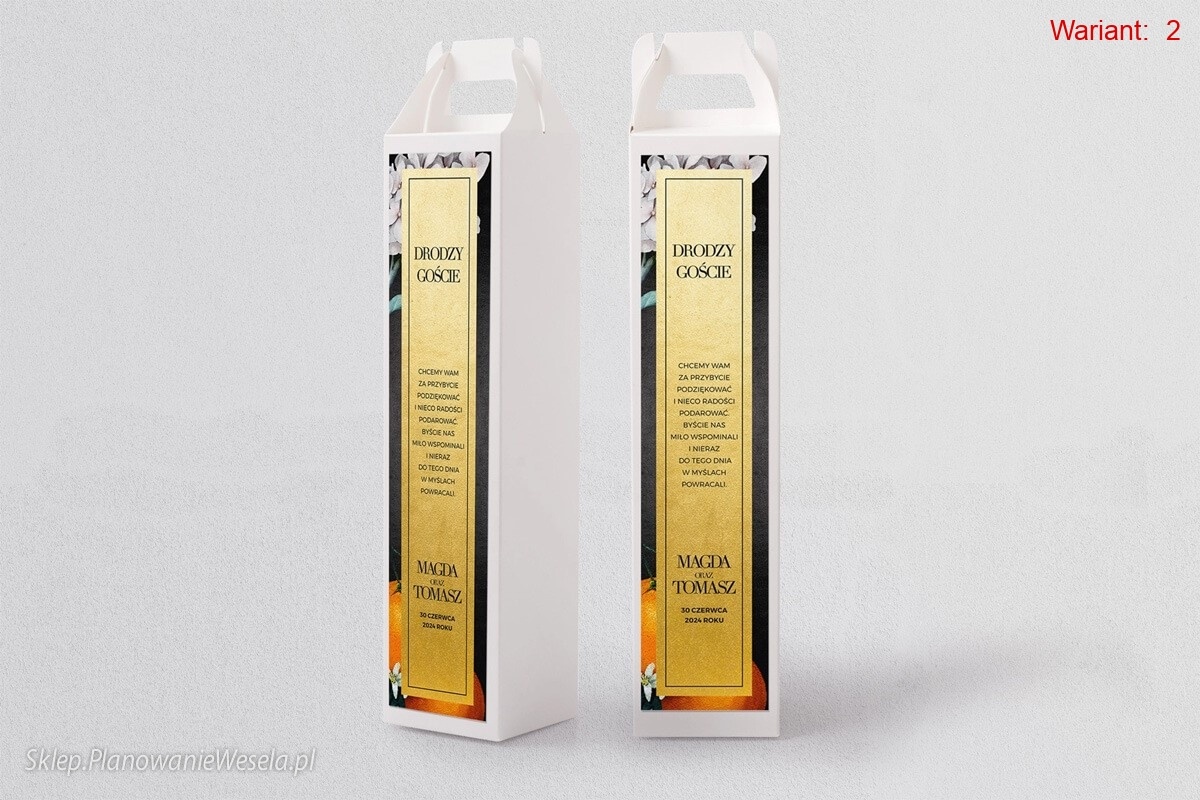 Pudełko na alkohol czyli wódkę lub wino. Wzór pasujący do zaproszeń i dodatków z tej samej kolekcji.