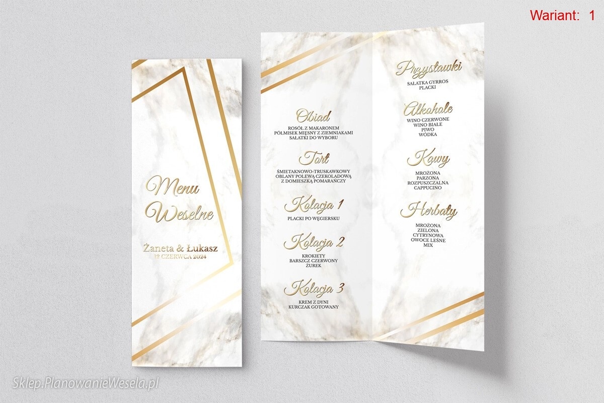 Menu Weselne Marmur - 2 wzory