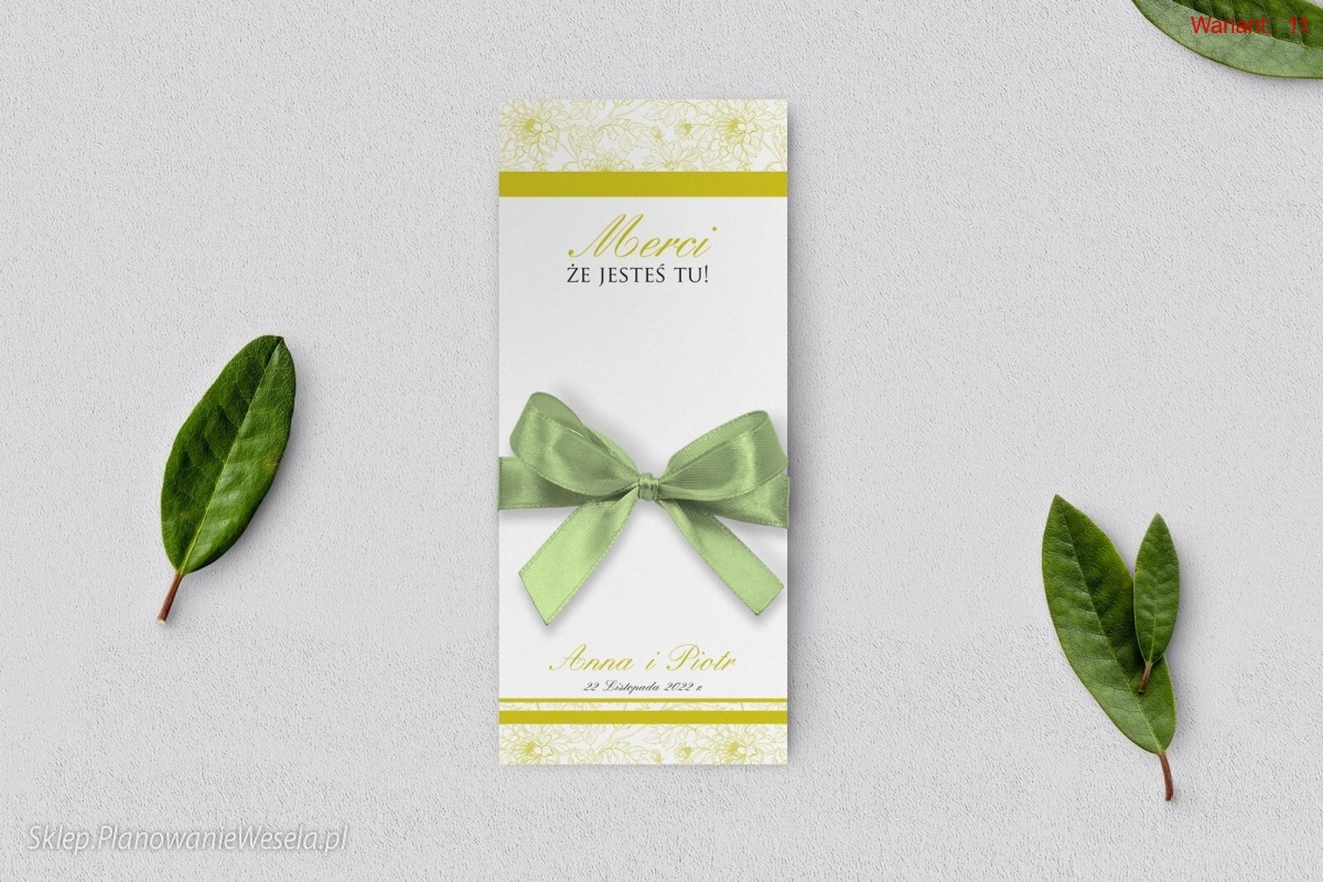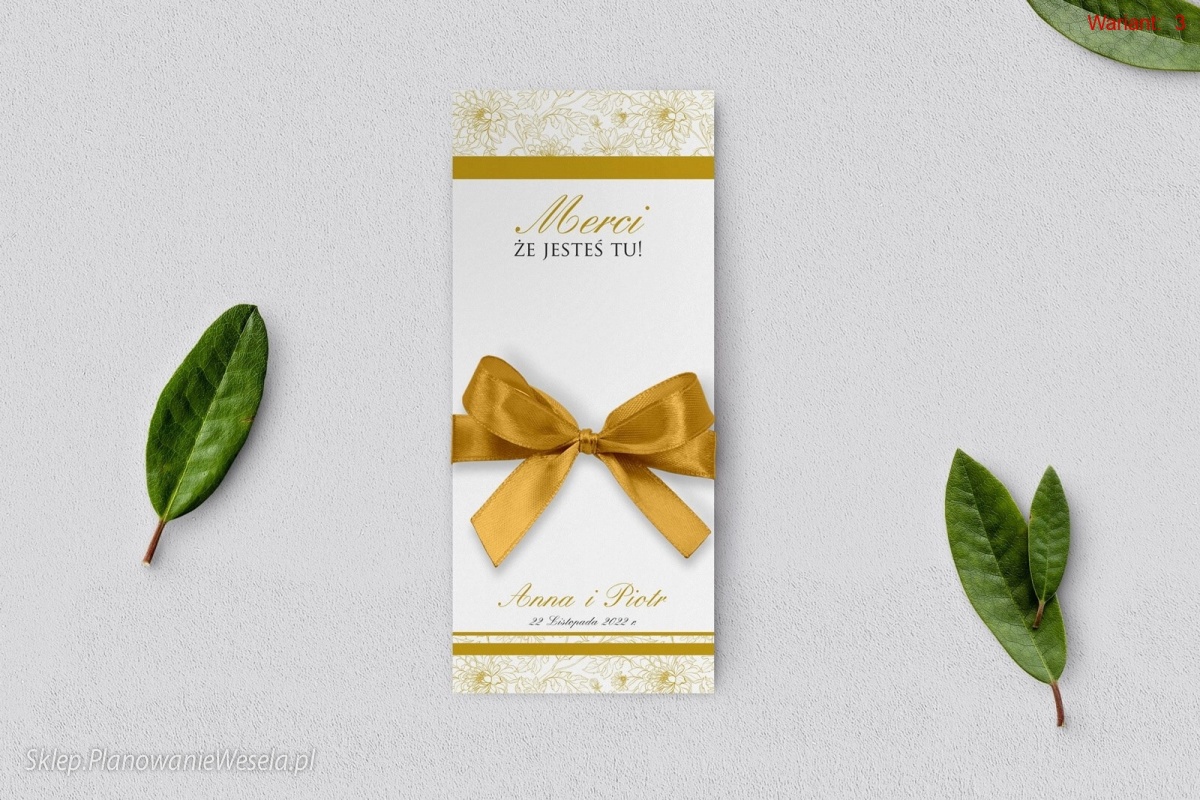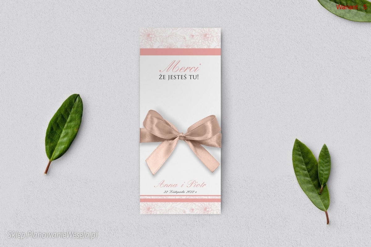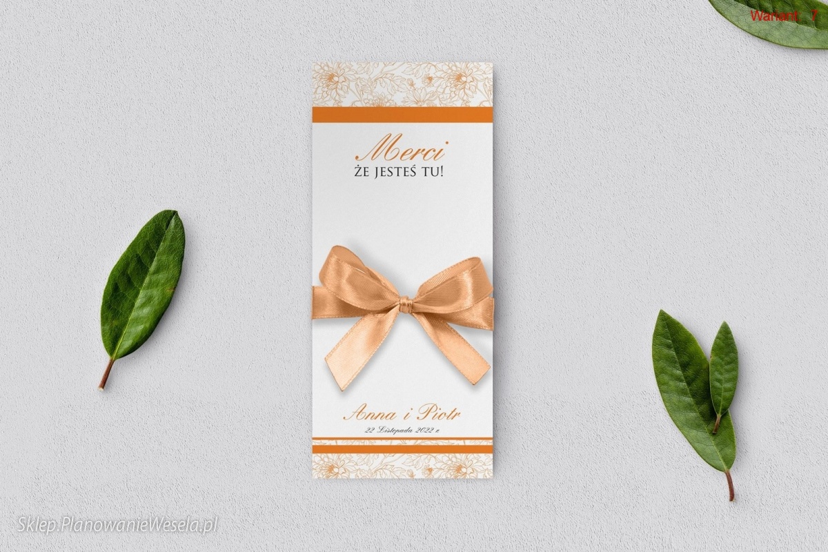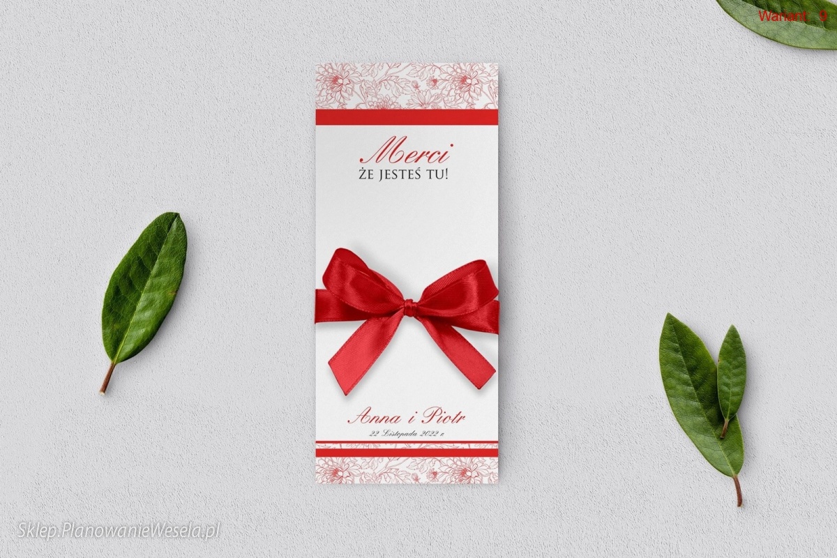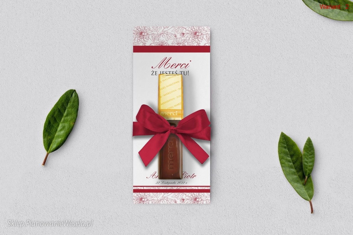 Karteczka do czekoladki Merci jako podziękowanie dla gości to wspaniały pomysł pod wieloma względami. Czekoladka pozwoli poczuć gościom "jak słodka jest miłość", a karteczka przystrojona wstążką lub sznureczkiem ozdobi stolik weselny. Produktem jest karteczka z aplikacją bez czekoladki.