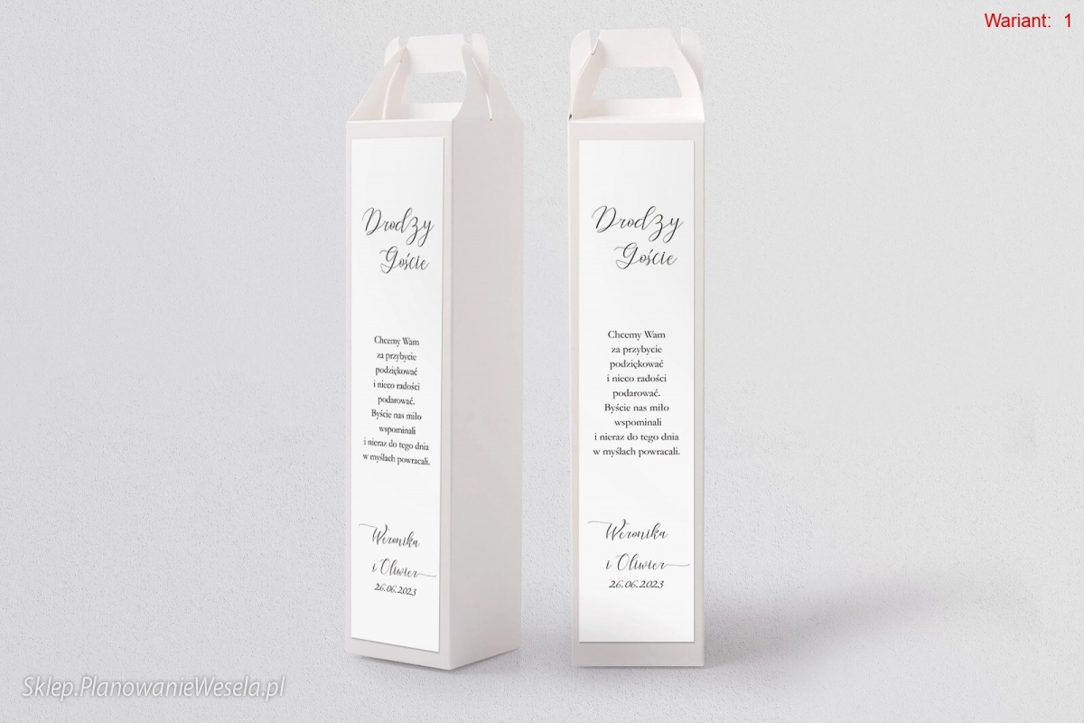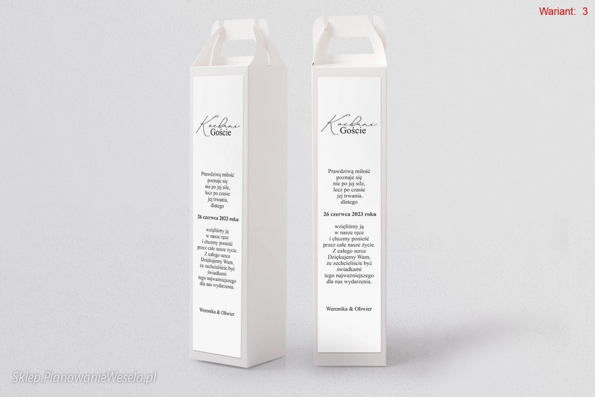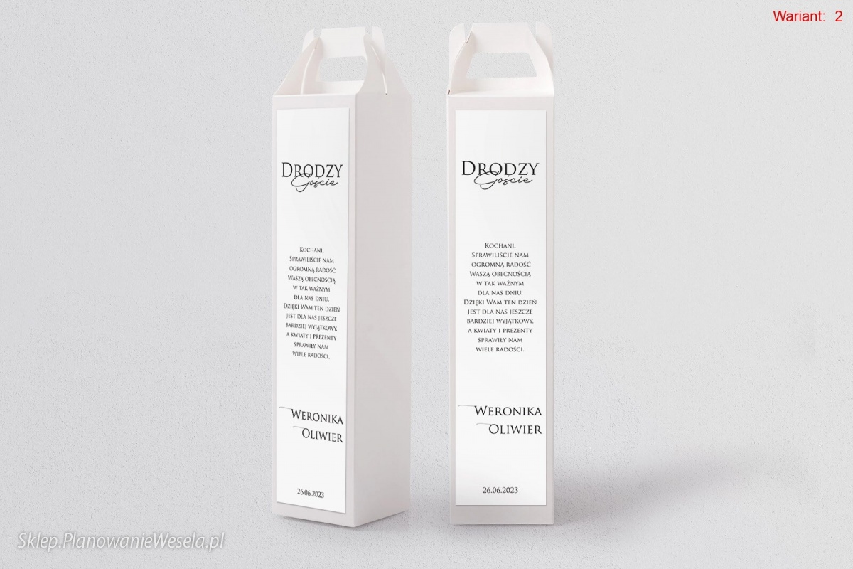 Pudełko na alkohol czyli wódkę lub wino. Wzór pasujący do zaproszeń i dodatków z tej samej kolekcji.