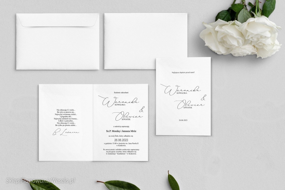 Zaproszenie  drukujemy na sztywnych papierach o gramaturach od 250 do 350 gr.