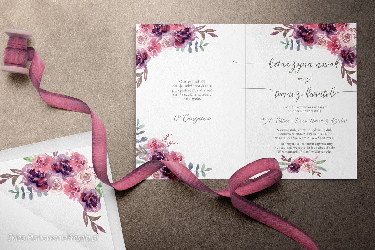 Zaproszenie  drukujemy na sztywnych papierach o gramaturach od 250 do 350 gr.