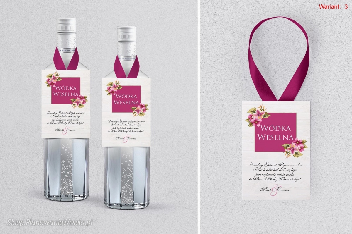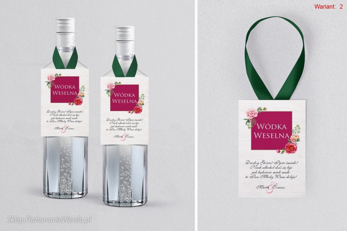 Nowoczesna zawieszka z kolorowa tasiemką do zawieszenia na butelce alkoholu, wódki lub wina.