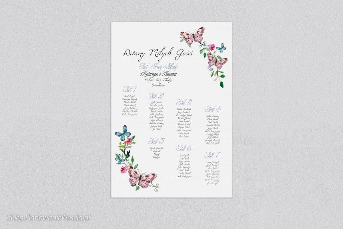 Plan stołów weselnych z piękną rozpiską gości, w pełni personalizowany.