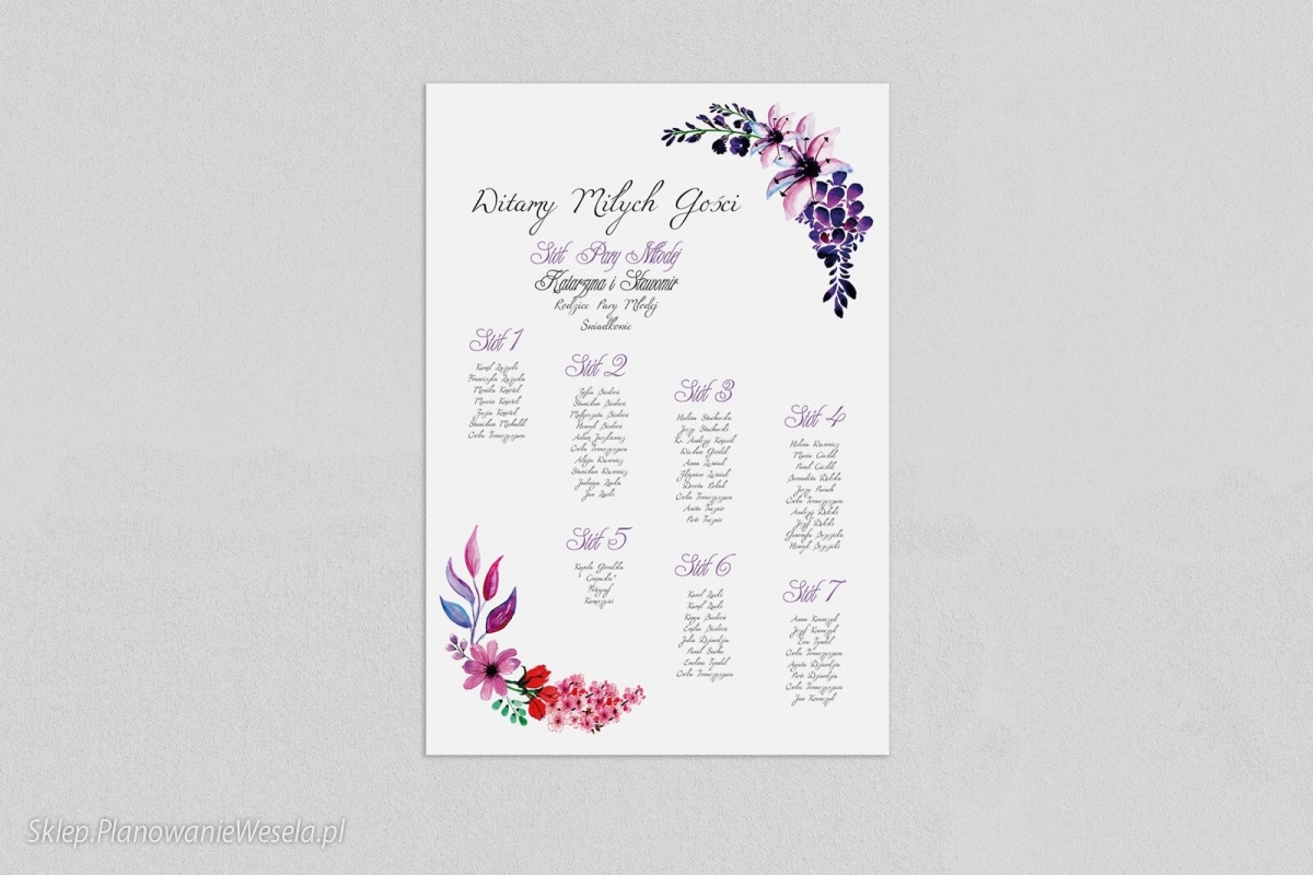 Plan stołów weselnych z piękną rozpiską gości, w pełni personalizowany.