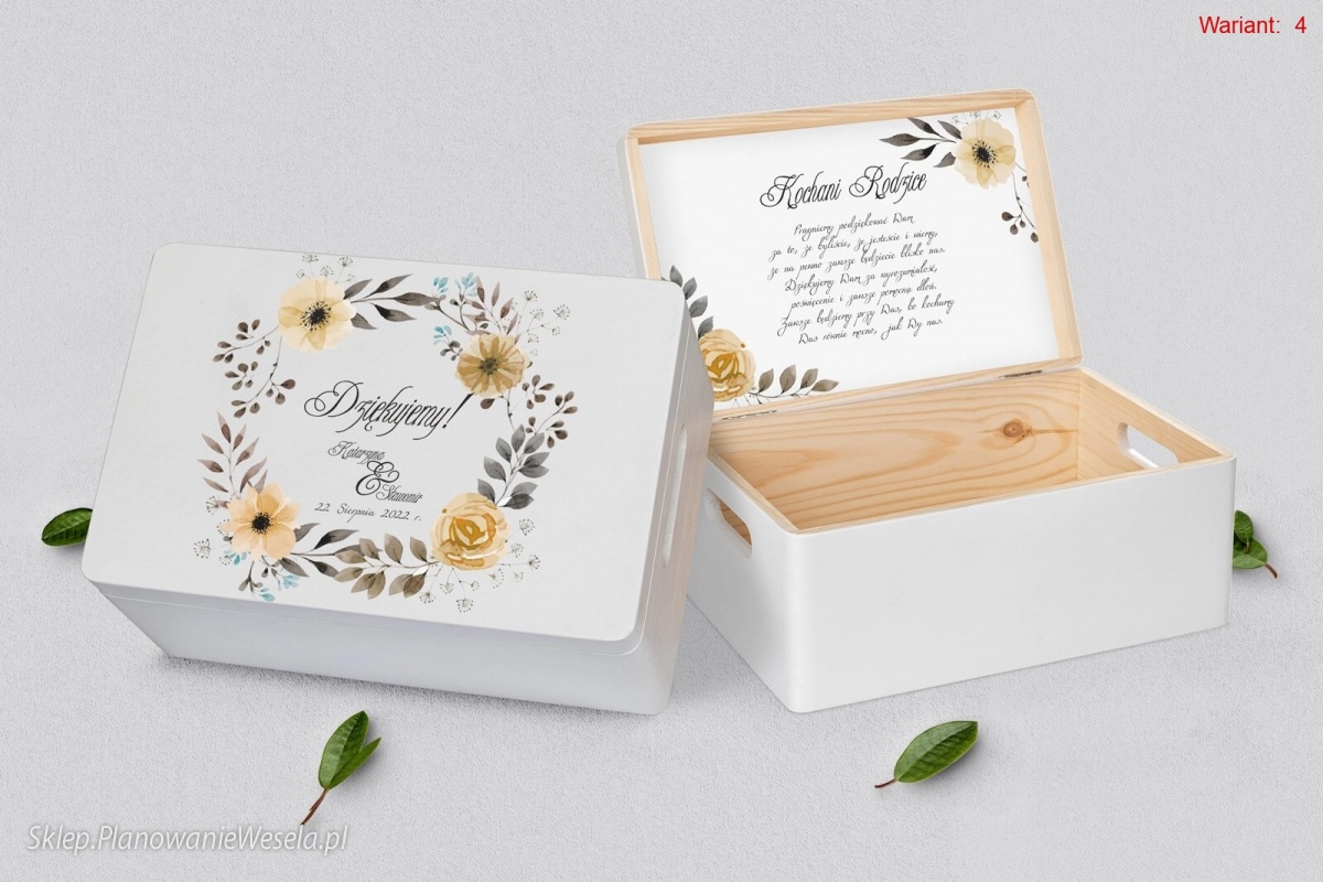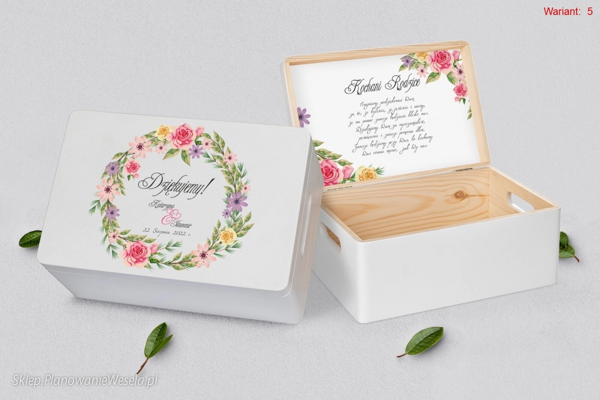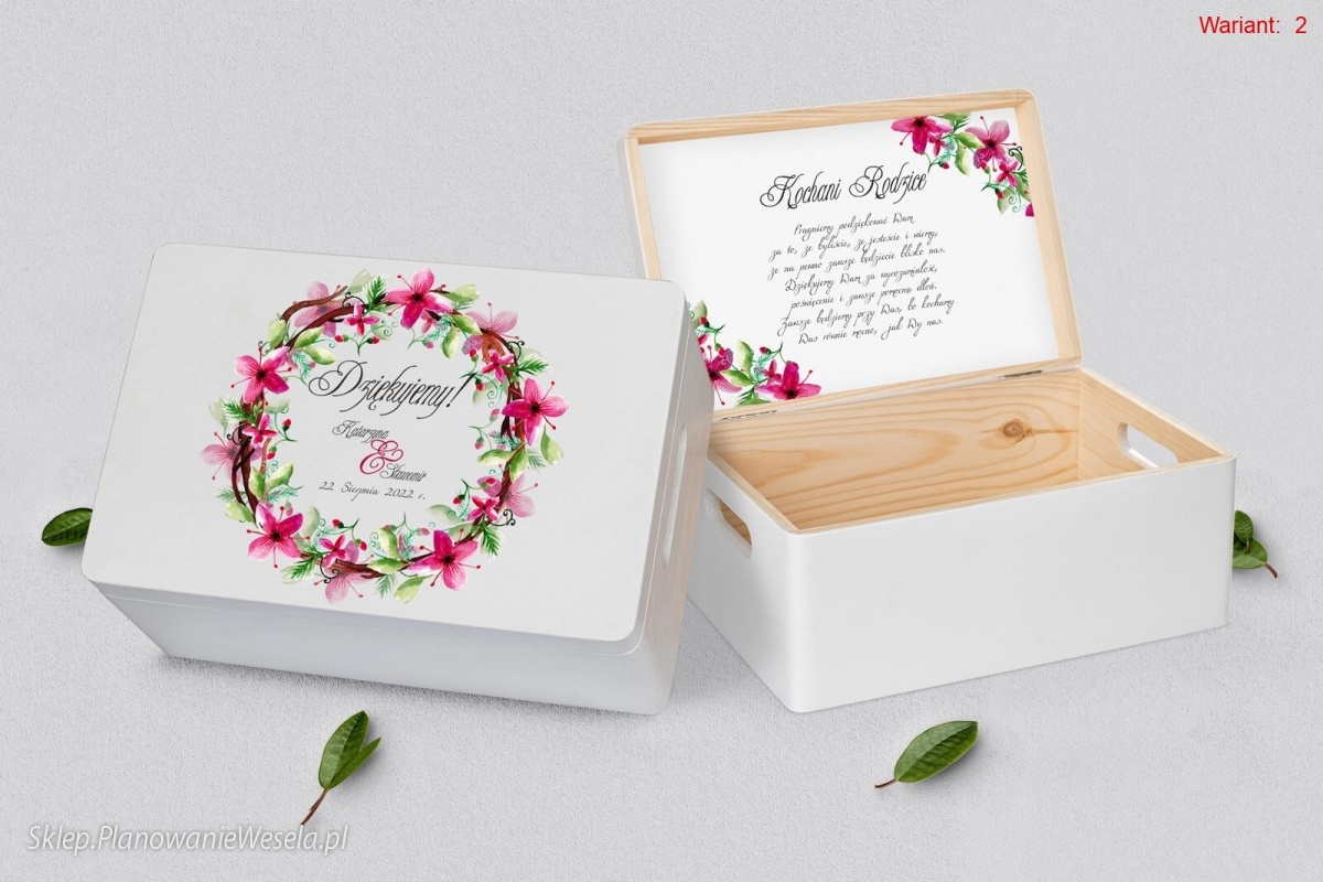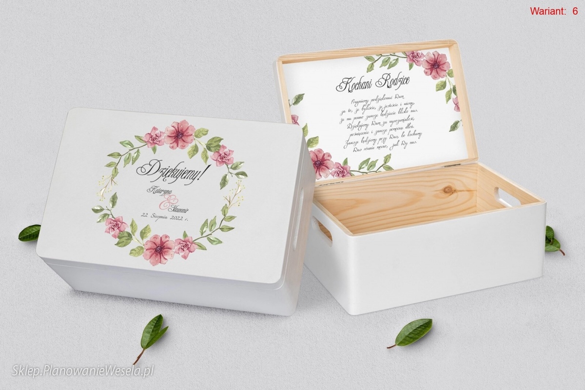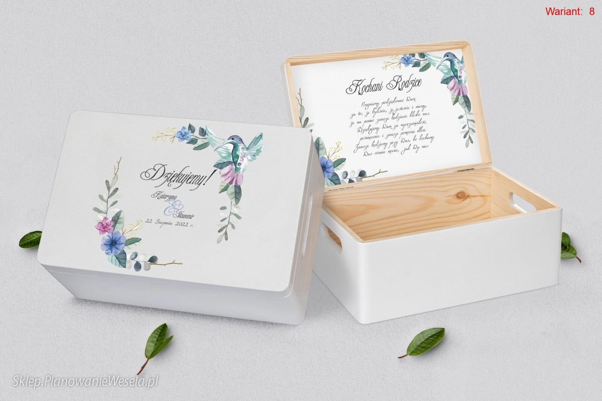 Na wierzchu szkatułki zamieścimy personalizację, a wewnątrz podziękowanie, która uczyni pudełko znakomitą pamiątką dla osoby obdarowanej.