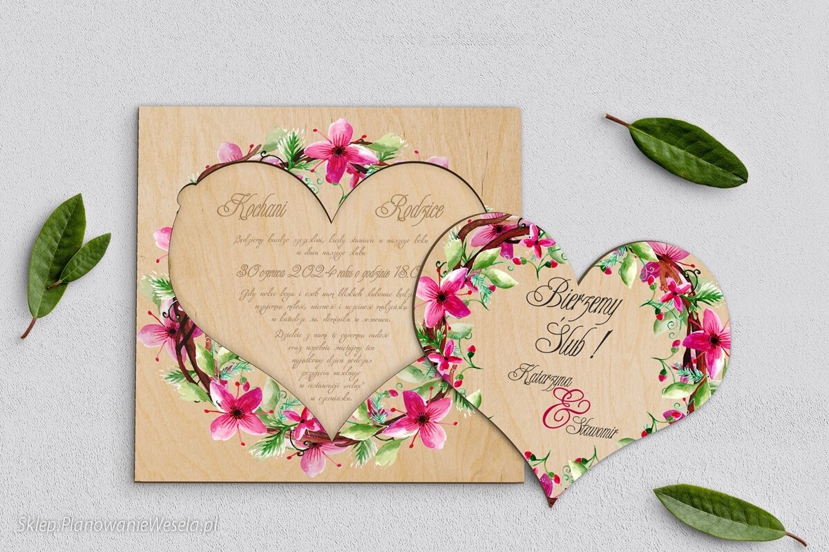 DREWNIANE ZAPROSZENIE Z SERCEM DLA RODZICÓW lub prośba o błogosławieństwo.  Piękne drewniane zaproszenie to nie tylko oryginalny sposób na poinformowanie o uroczystości, ale też wyjątkowa i idealna pamiątka, która pozostanie na lata.