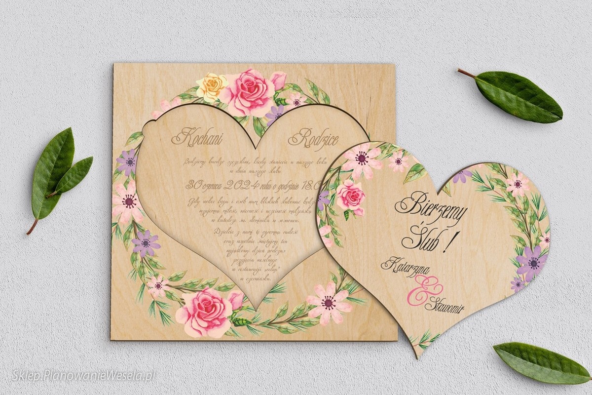 DREWNIANE ZAPROSZENIE Z SERCEM DLA RODZICÓW lub prośba o błogosławieństwo.  Piękne drewniane zaproszenie to nie tylko oryginalny sposób na poinformowanie o uroczystości, ale też wyjątkowa i idealna pamiątka, która pozostanie na lata.