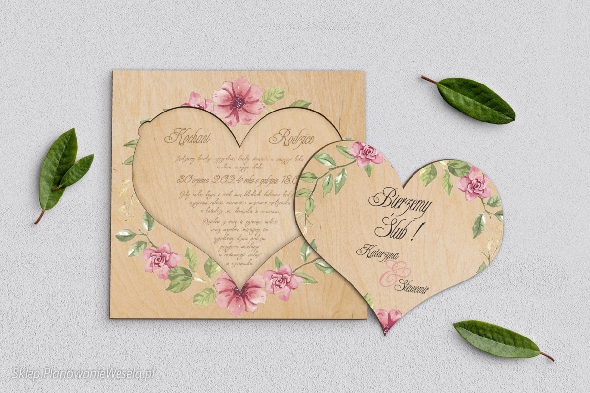 DREWNIANE ZAPROSZENIE Z SERCEM DLA RODZICÓW lub prośba o błogosławieństwo.  Piękne drewniane zaproszenie to nie tylko oryginalny sposób na poinformowanie o uroczystości, ale też wyjątkowa i idealna pamiątka, która pozostanie na lata.