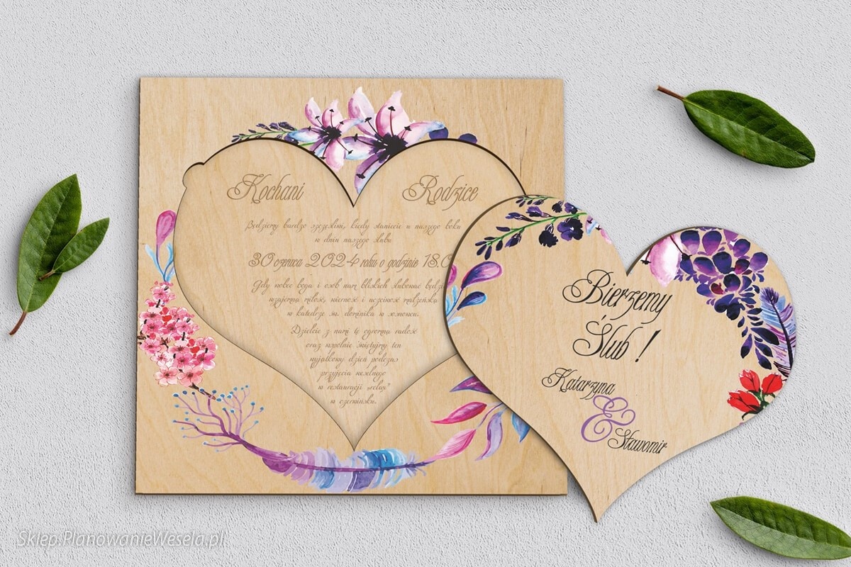 DREWNIANE ZAPROSZENIE Z SERCEM DLA RODZICÓW lub prośba o błogosławieństwo.  Piękne drewniane zaproszenie to nie tylko oryginalny sposób na poinformowanie o uroczystości, ale też wyjątkowa i idealna pamiątka, która pozostanie na lata.