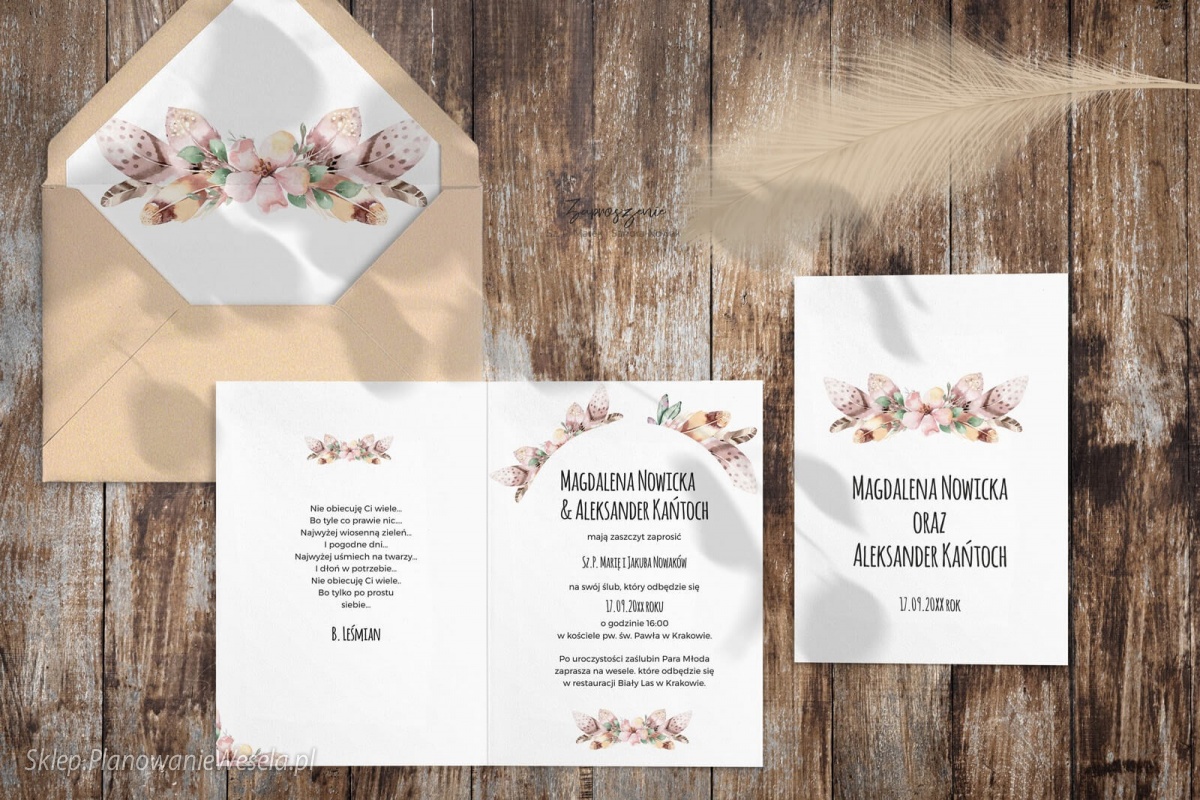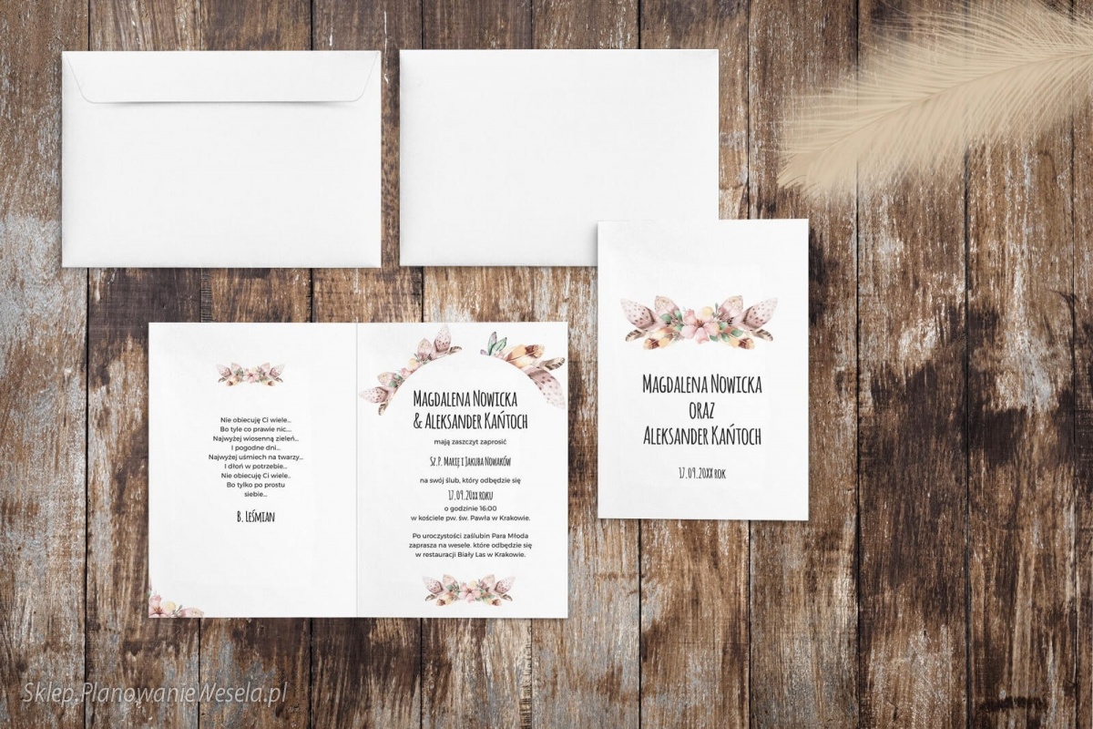 Zaproszenie składane Piórko 1