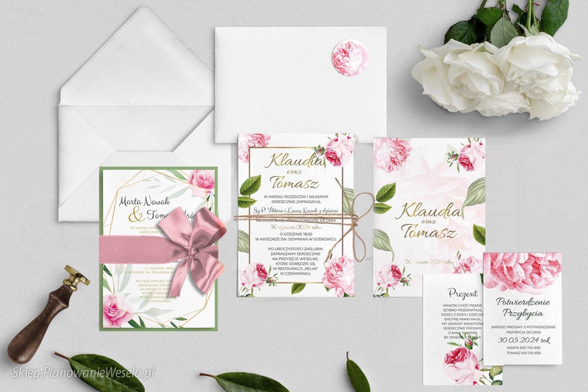 Na zaproszeniu jest miejsce na informację o ślubie oraz o przyjęciu weselnym.
