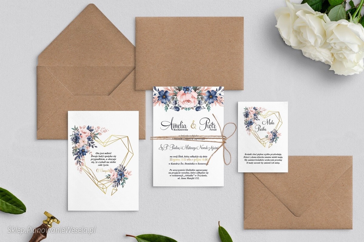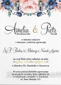Na zaproszeniu jest miejsce na informację o ślubie oraz o przyjęciu weselnym.