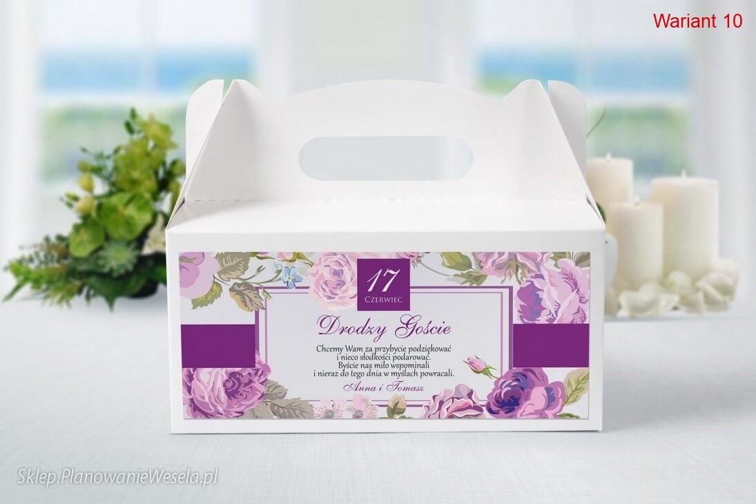 Pudełko na ciasto/placki. Wzór pasujący do zaproszeń i dodatków z tej samej kolekcji.