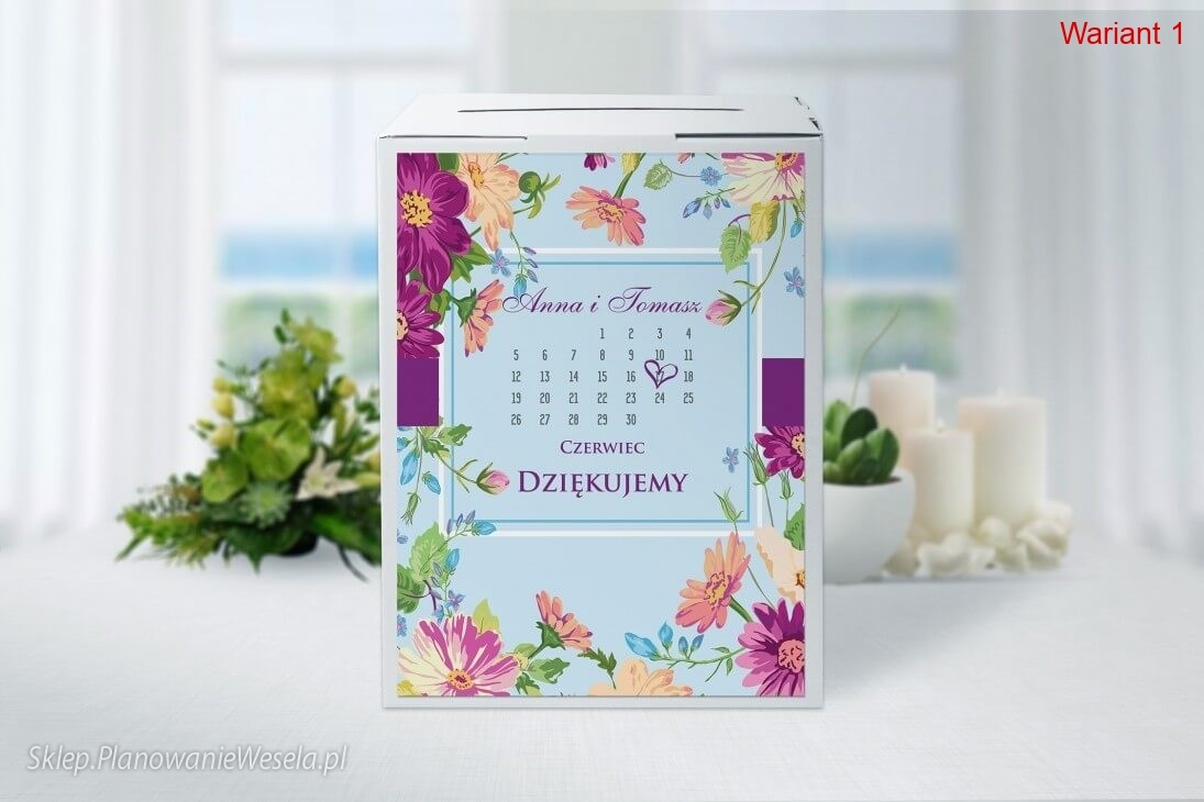 Pudełko na koperty. Wzór pasujący do zaproszeń i dodatków z tej samej kolekcji.