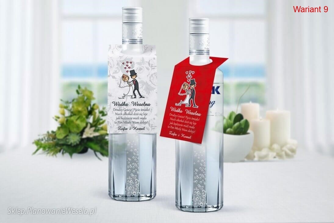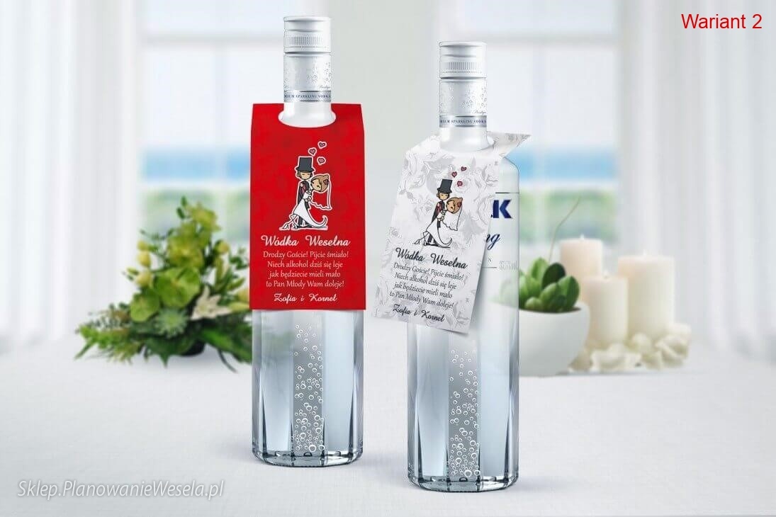 Nowoczesna zawieszka z oczkiem do zawieszenia na butelce alkoholu, wódki lub wina.