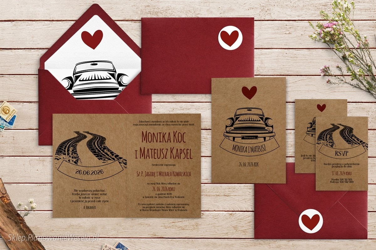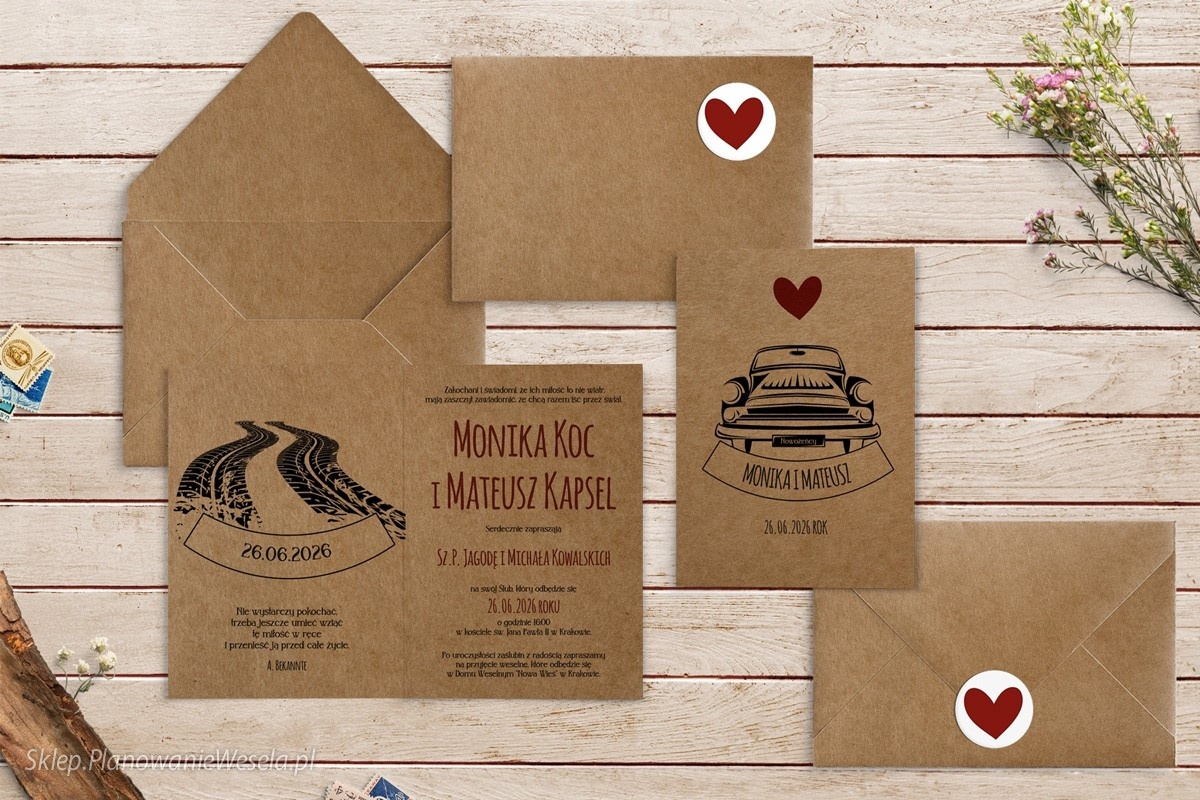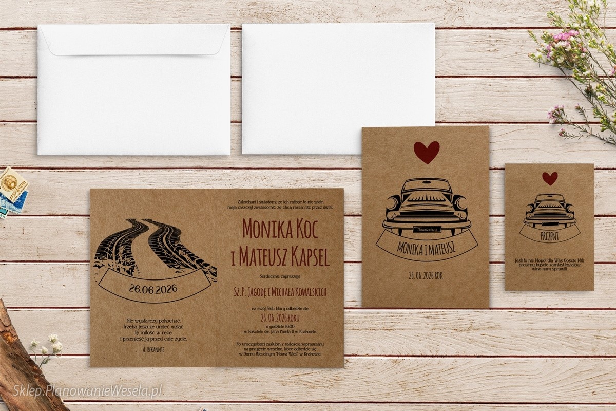 Zaproszenie składane Trip 2 - auto