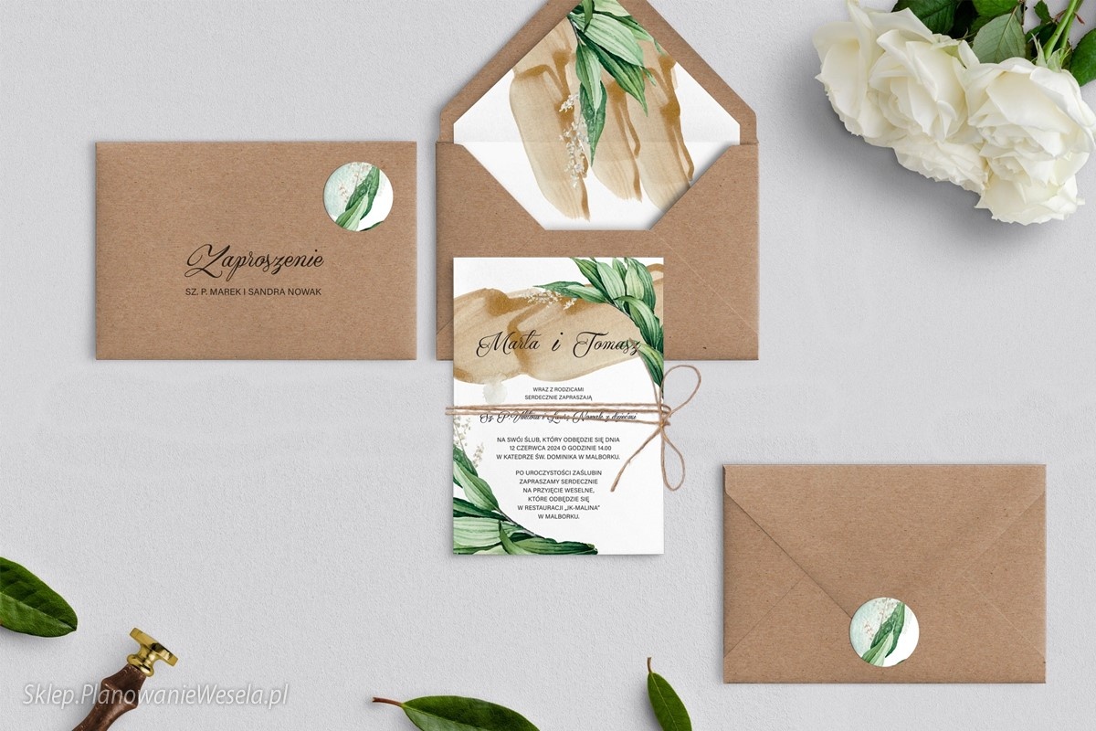 Na zaproszeniu jest miejsce na informację o ślubie oraz o przyjęciu weselnym.