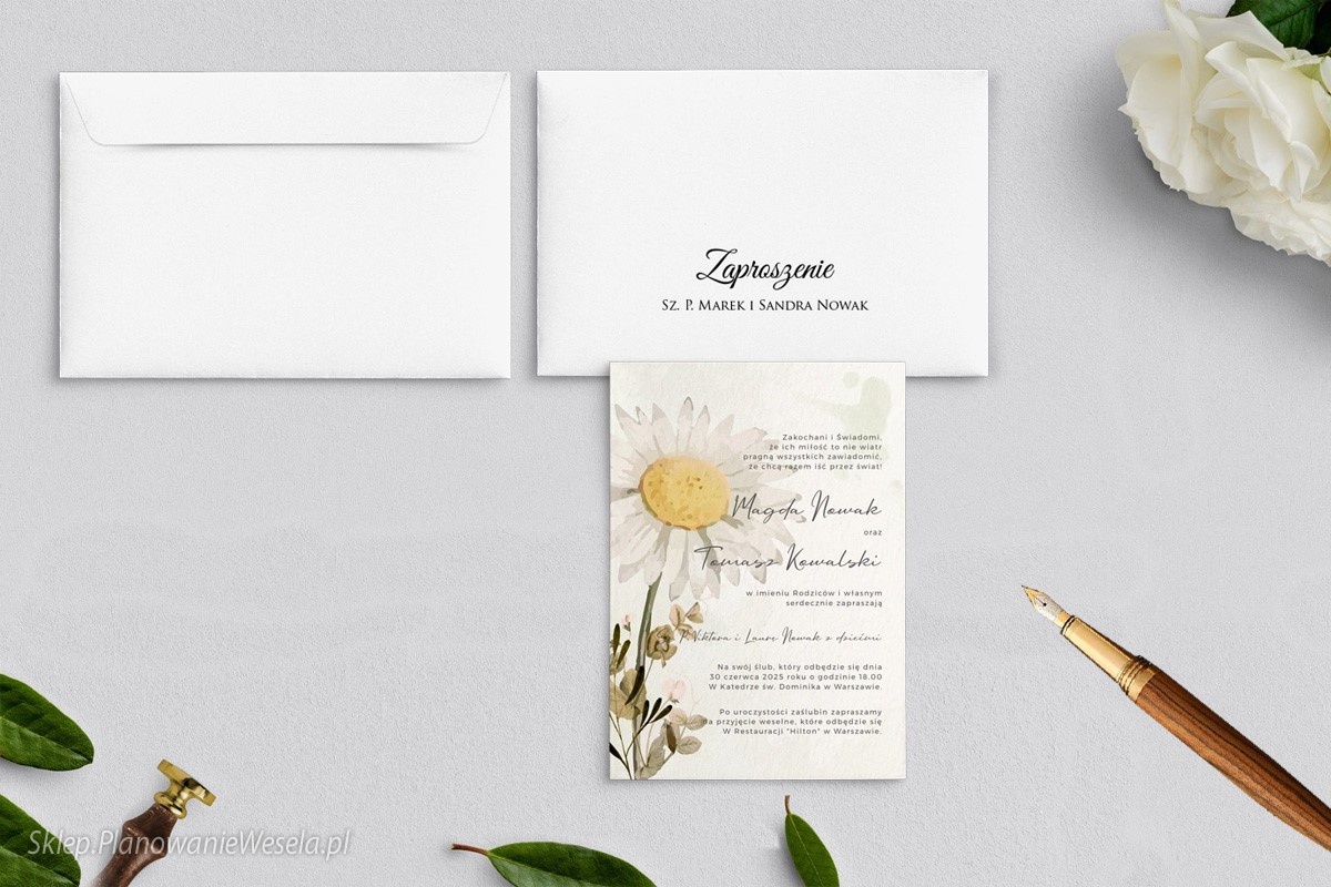 Na zaproszeniu jest miejsce na informację o ślubie oraz o przyjęciu weselnym.