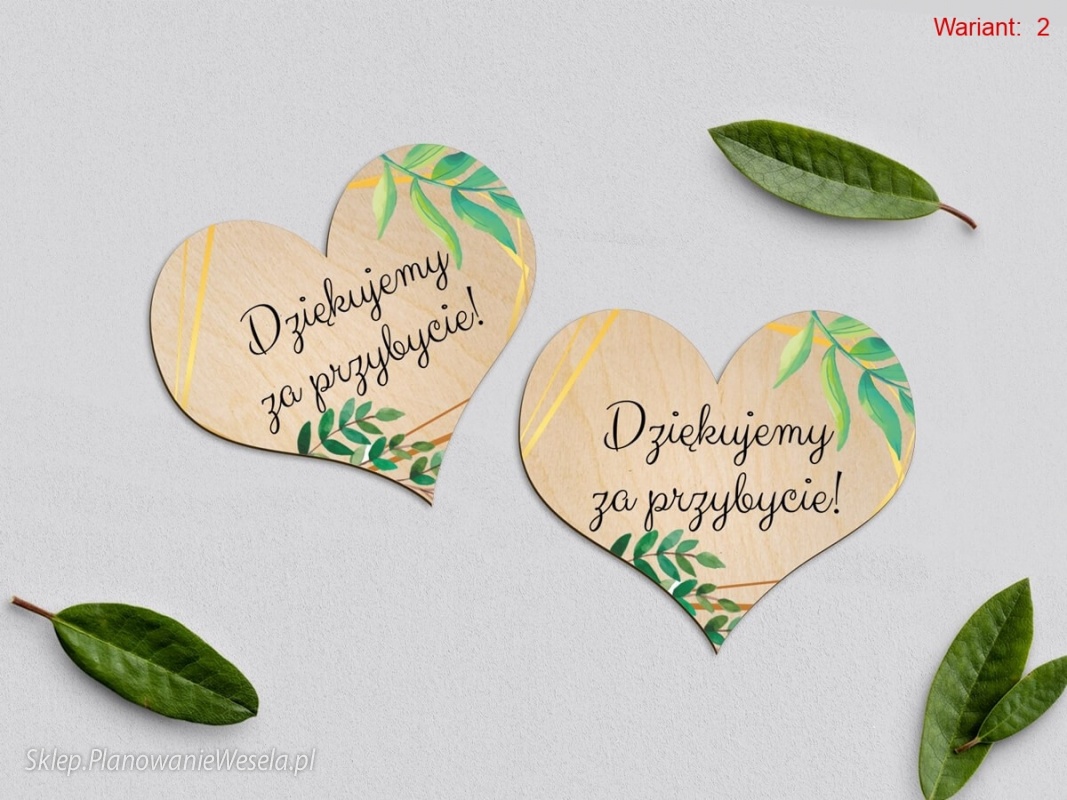 Prezent/podziękowanie (magnes na lodówkę) w postaci drewnianych serc wraz ze spersonalizowanym grawerem jest idealnym drobiazgiem dla gości jako podziękowanie, że w tym wspaniałym dniu zechcieli nam towarzyszyć.
